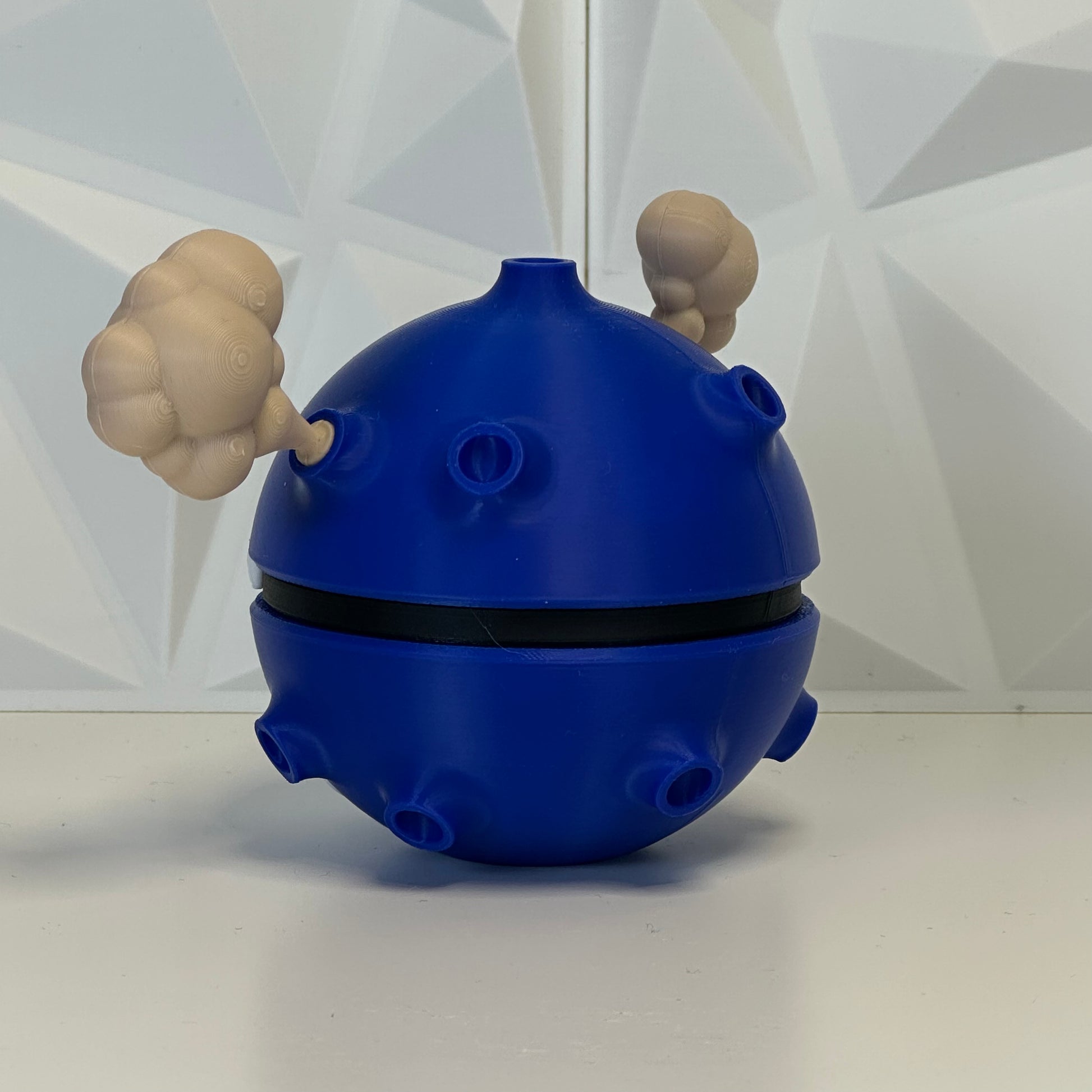 Esta Pokéball de colección está pensada para fans que buscan una pieza decorativa con personalidad, perfecta para estanterías, escritorios y vitrinas. El diseño resalta la esencia de Koffing con un estilo limpio y coleccionable.